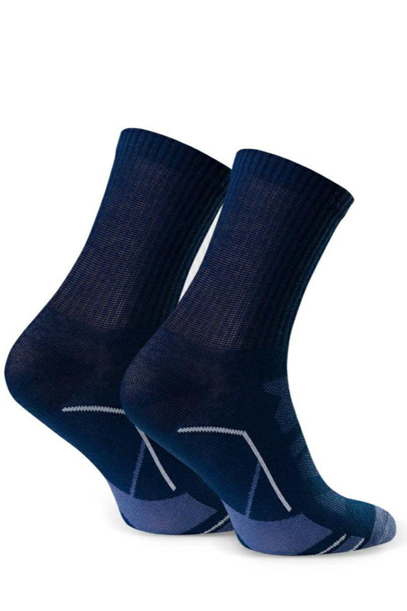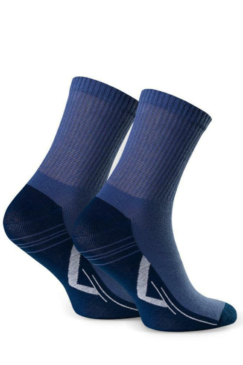 Бавовняні спортивні шкарпетки для хлопчиків з високим ребром. Випускається у багатьох динамічних, темних та світлих поєднаннях кольорів та візерунків (кольори надсилаються випадковим чином). Практичний і зручний також для повсякденного використання.