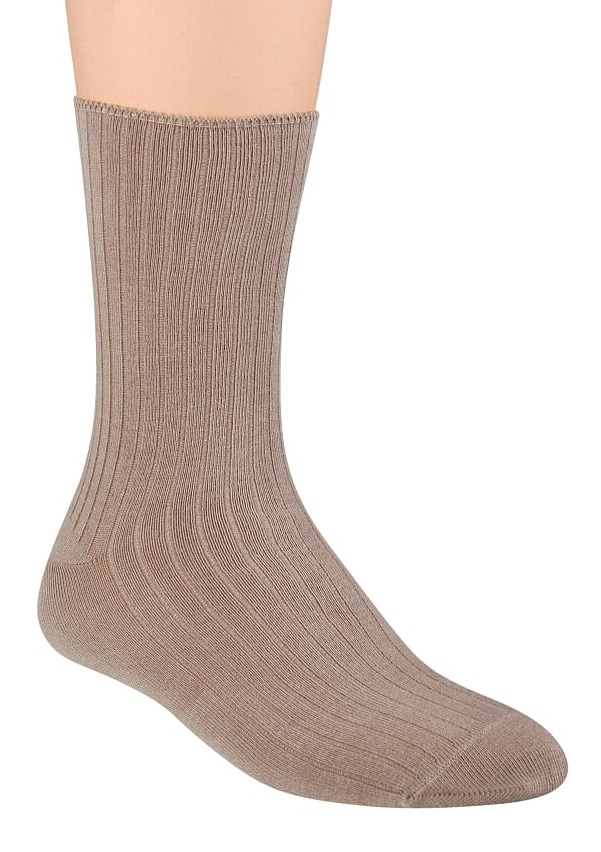 Чоловічі шкарпетки без тиску з додаванням бамбукового волокна. Еластична манжета забезпечує правильний кровообіг у стопах. Вони ефективно видаляють вологу, повітряні та комфортні. Склад: віскоза / бамбук 76%, поліамід 22%, еластан 2%.
