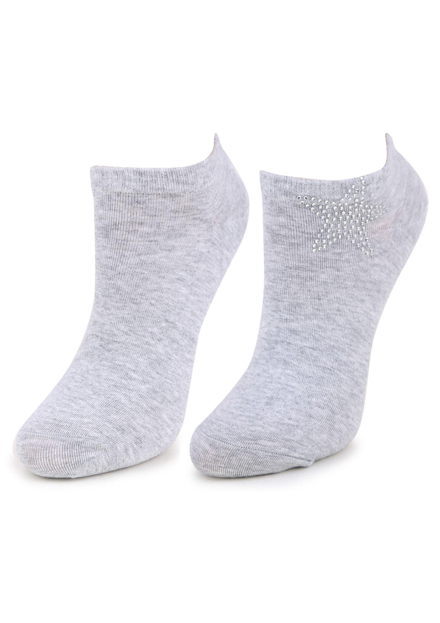 Низькі гладкі жіночі шкарпетки, прикрашені з боків цирконовою зіркою. Виготовлена з натуральної бавовни найвищої якості. Плоский і м'який шов забезпечує комфорт при носінні. Склад: 75% бавовна, 25% еластан.