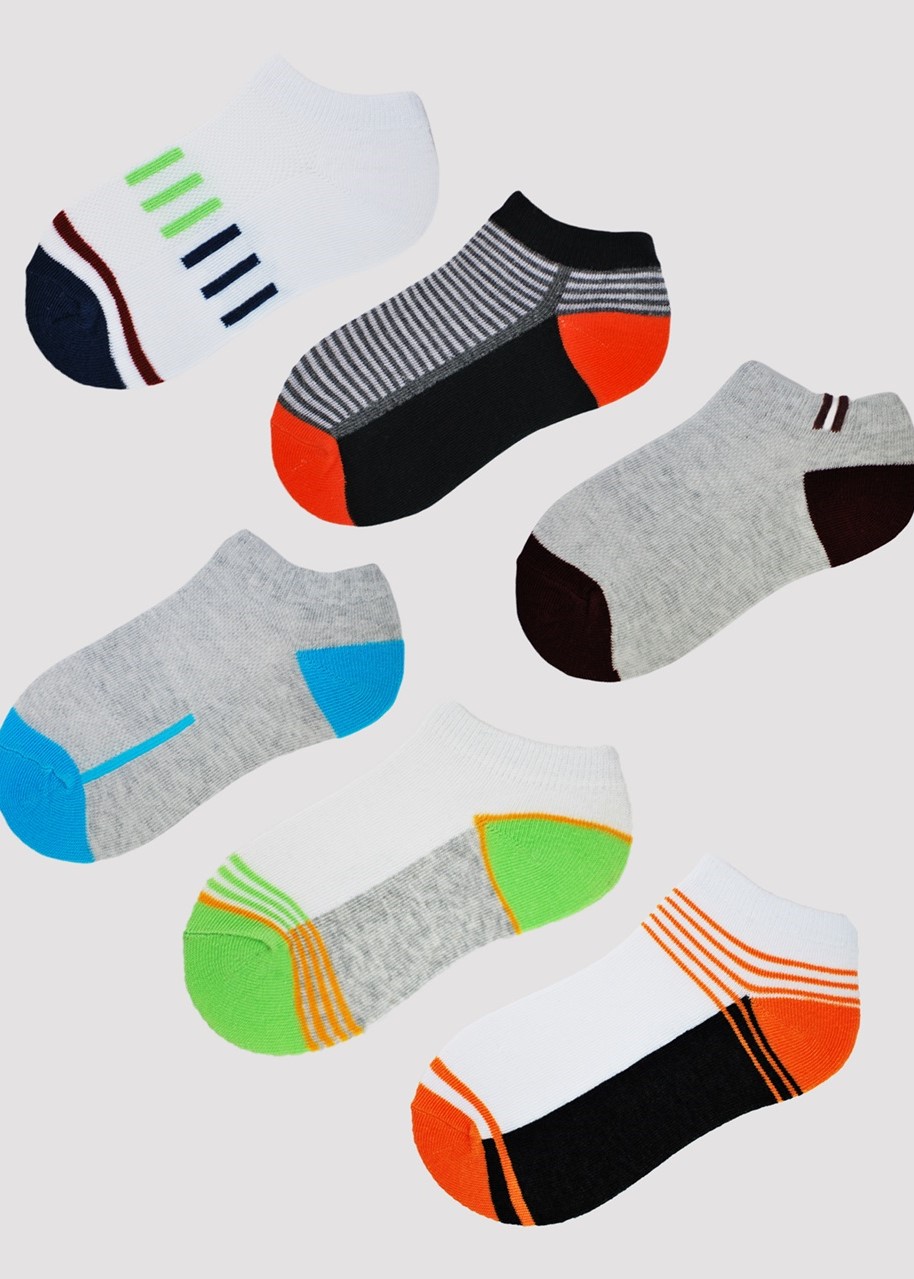 Спортивні шкарпетки з високоякісної бавовни. Цікаві кольори чудово поєднуються з повсякденним стилем. Манжета без тиску забезпечує високий комфорт при носінні. Кольори упаковані випадковим чином. Склад: 74% бавовна, 23% поліамід, 3% еластан.
