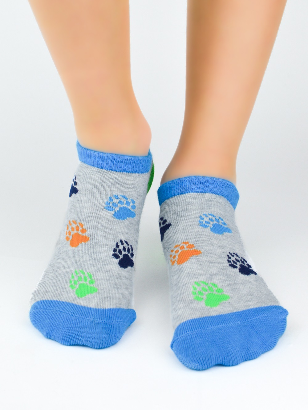 Бавовняні дитячі ніжки, прикрашені різнокольоровими візерунками. Антиковзаюча ніжка. Склад: 70% бавовна, 25% поліамід, 5% еластан.