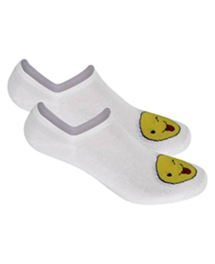 Жіночі бавовняні шкарпетки, прикрашені різнокольоровими принтами з кумедним обличчям спереду. Склад 84% бавовна, 14% поліамід і 2% еластан.