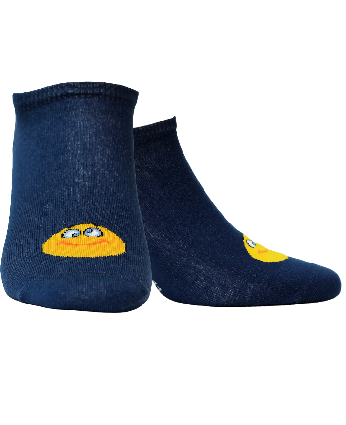 Жіночі бавовняні шкарпетки, прикрашені різнокольоровими принтами з кумедним обличчям спереду. Склад 84% бавовна, 14% поліамід і 2% еластан.