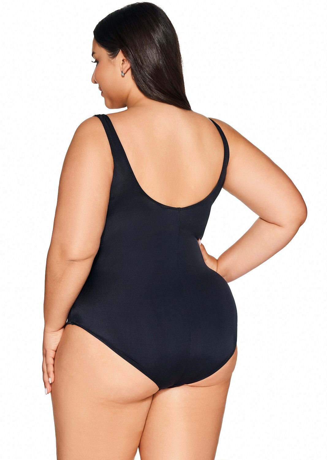 Суцільний купальник. Чашки Kopa утримають груди в потрібному місці. Виріз «конверт» візуально стоншує фігуру. Спинка форми, незважаючи на глибокий виріз на спині, плавно прилягає до тіла, не даючи лямкам зісковзувати. Кожна жінка заслуговує на ефектний вигляд із SKJ 61! Цей елегантний суцільний купальник з високоякісної тканини чудово приховує будь-які недоліки. Чашки Kopa, приховані під еластичною тканиною, стабілізують бюст, піднімаючи його вгору і оголюючи в зоні декольте. Широкі бретелі розвантажують хребет, а тонкі волани підкреслюють фігуру. Однотонний низ чорного кольору з розрізом вище стегон надає фігурі легкості та оптично стрункість. Склад сировини: 80% поліамід, 20% еластан.