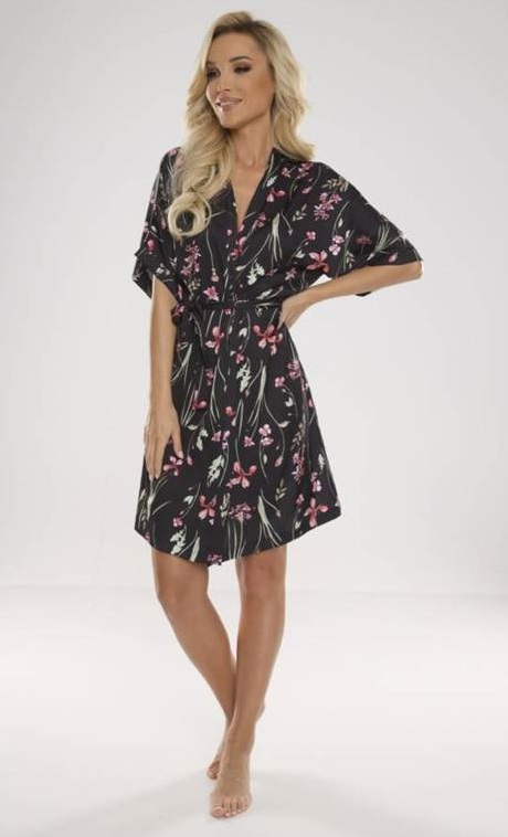 Гарний, повітряний, атласний жіночий халат, прикрашений барвистим квітковим візерунком. Зав'язується на талії, рукав до ліктя. Склад: 97% поліестер, 3% еластан.