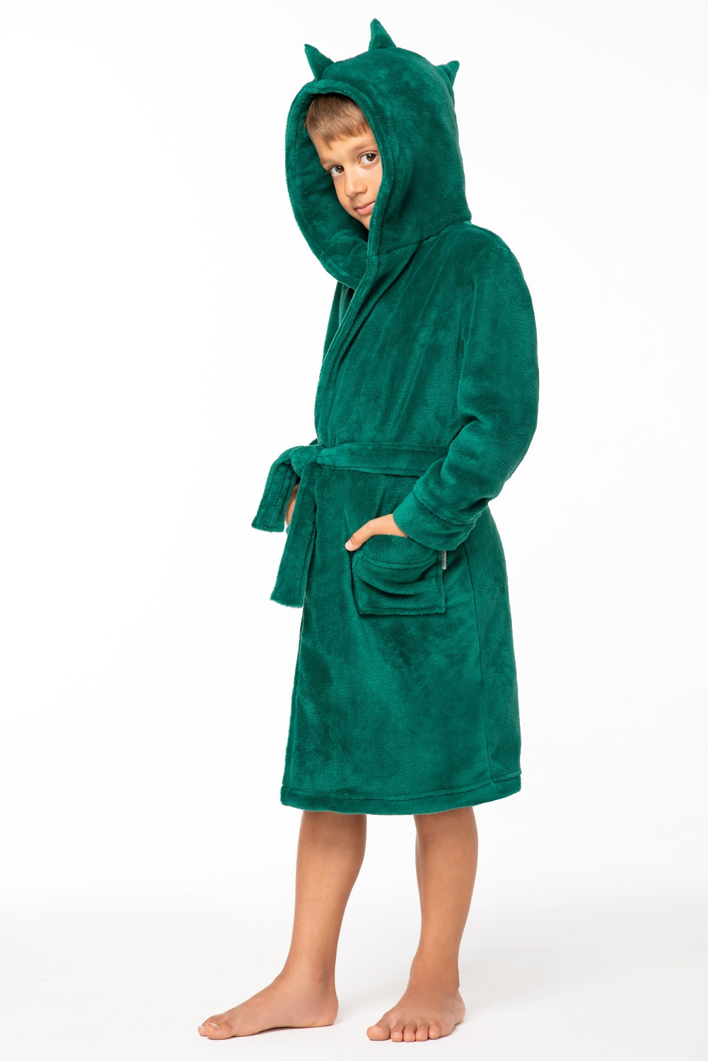 Зручний і приємний на дотик халат, що імітує фігуру дракона. Він був виготовлений з м’якого матеріалу, який не прилипає. Модель має кишені, підшивку на талії та капюшон. Склад: 100% поліестер.