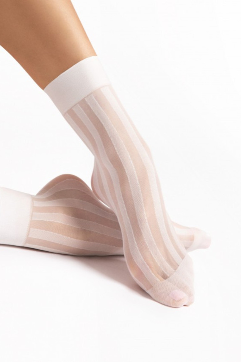 Шкарпетки VIBE призначені для жінок, які люблять виражати свій стиль унікальним чином. Прозорий матеріал у поєднанні з елегантними вертикальними смужками робить ноги стрункішими та чуттєвішими. Вони ідеально поєднуються як з високими підборами, так і з балетками – від шпильок до лоферів та балеток. Цей аксесуар поєднує класичну елегантність з ноткою сучасності, надаючи кожному образу неповторного характеру.