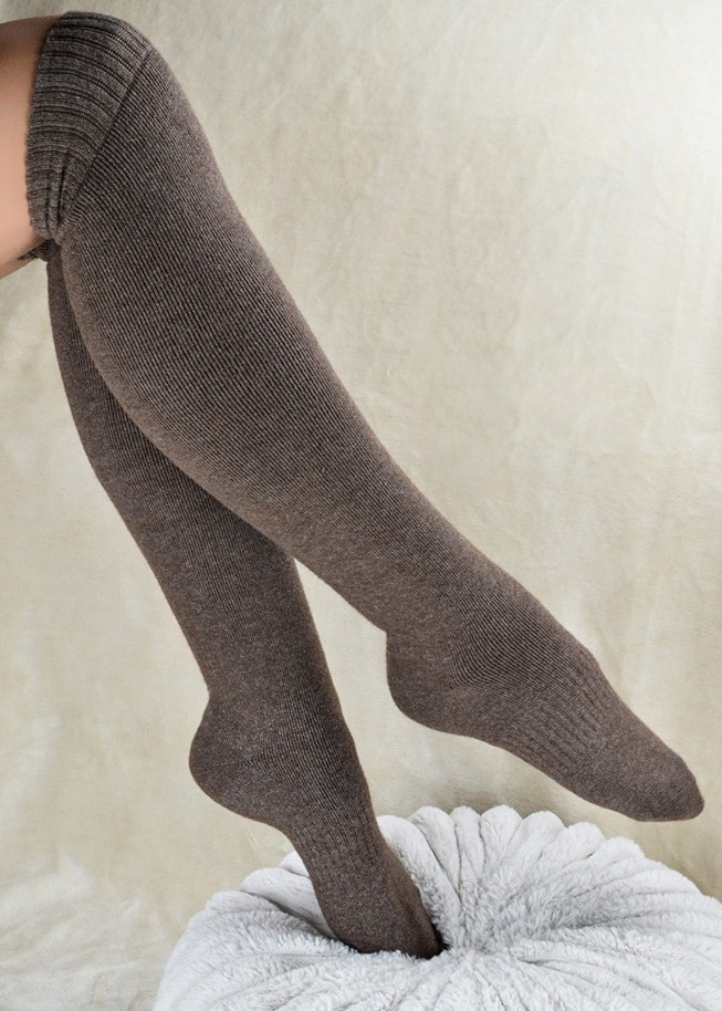 Теплі жіночі гольфи вище коліна, оздоблені ніжним смугастим візерунком. Склад: 40% поліестер, 35% акрил, 20% поліамід, 5% еластан.