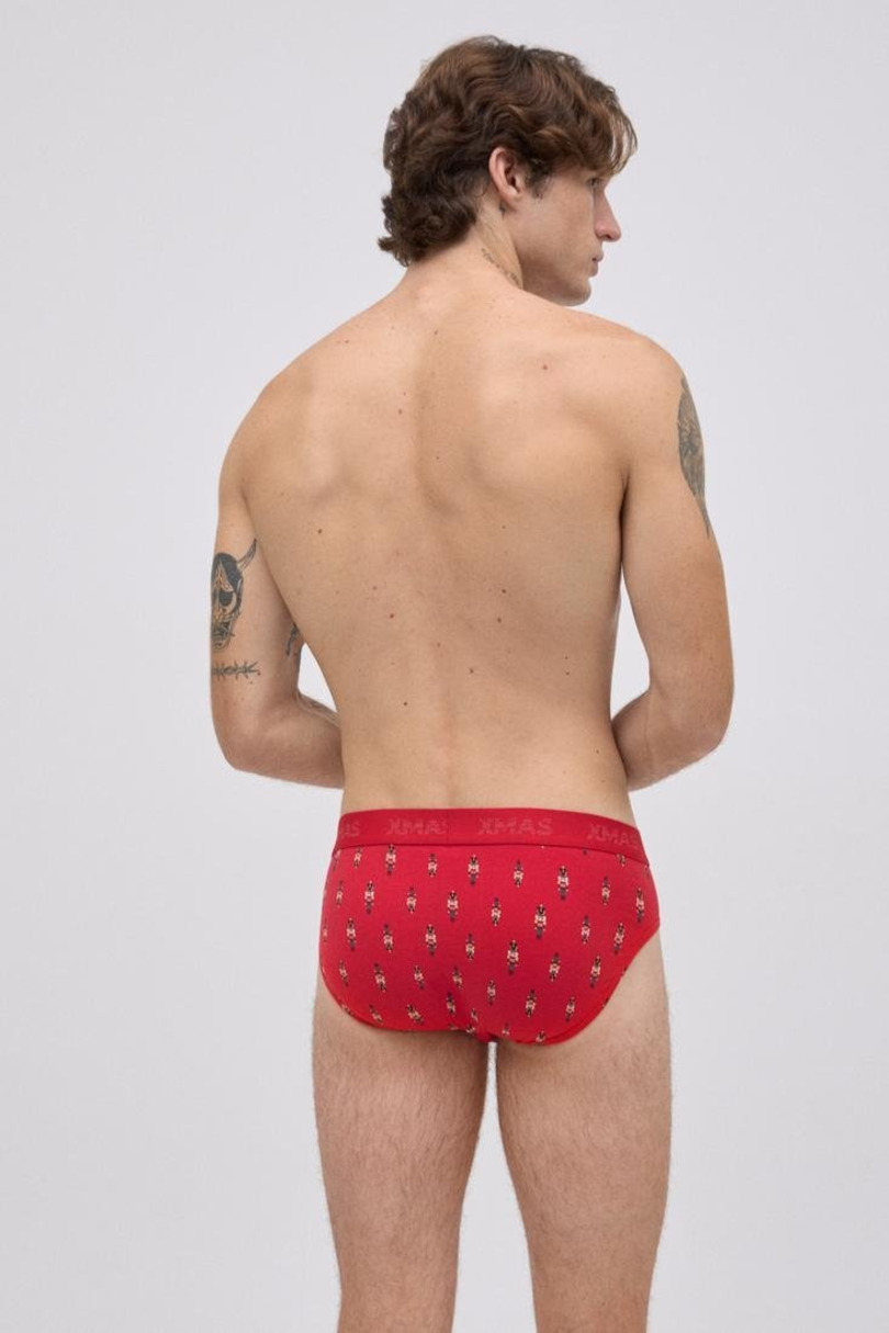 Ці червоні чоловічі труси з різдвяної колекції поєднують класичний крій зі святковим стилем. Виготовлені з високоякісної, дихаючої бавовни з додаванням еластану, вони гарантують комфорт та ідеальну посадку протягом усього дня. Труси прикрашені дрібним візерунком у вигляді іграшкових солдатиків, що надає їм унікального різдвяного шарму. Еластичний пояс з написом "XMAS" забезпечує надійну посадку, а м'який матеріал та ретельна обробка роблять ці труси ідеальним вибором для зимових днів — як для щоденного носіння, так і для святкового подарунка. Шкарпетки в комплекті. Склад: 95% бавовна, 5% еластан