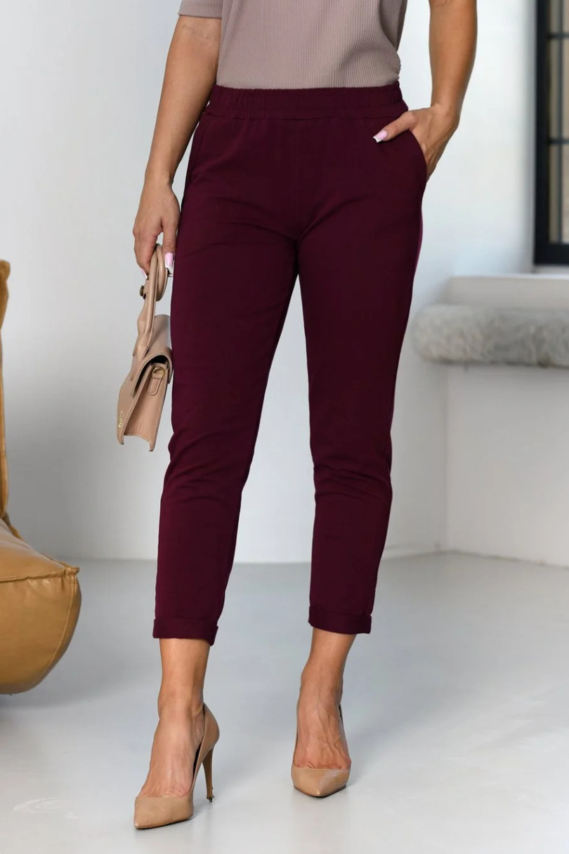 Жіночі спортивні штани. Модель довжиною 7/8 штанин з підворотом внизу. Спереду дві кишені, ззаду гладка. Склад: 95% бавовна, 5% еластан.
