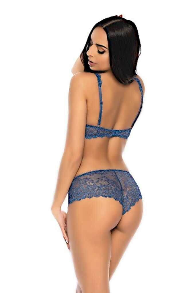 Жіночий бюстгальтер на підкладці з мережива з квітковим мотивом. Внутрішня сторона чаші обшита бавовною. Мереживні боки. Декоративні, регульовані бретелі, не знімаються. Склад: 44% поліамід, 17% бавовна, 17% поліестер, 17% поліуретан, 5% еластан.