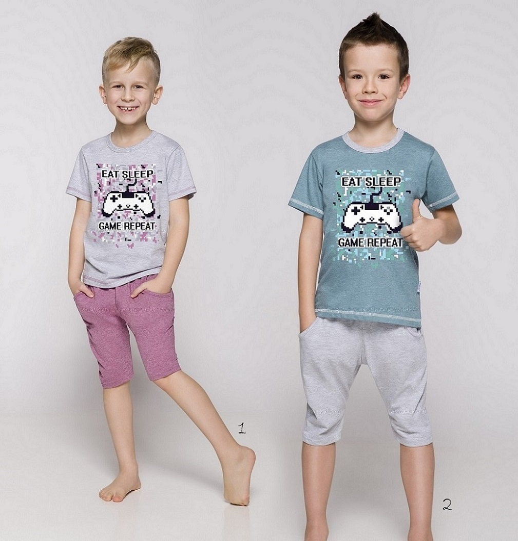 Піжама для хлопчика з принтом, виготовлена з високоякісної бавовни. Футболка з короткими рукавами, круглим вирізом. Шорти з кишенями, нижче коліна, з нестиснучою гумою в тунелі. Склад: 92% бавовна, 8% поліестер.