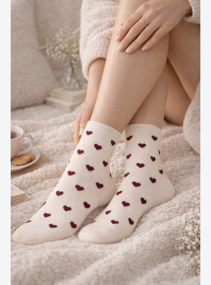 Жіночі гольфи з ефектним ажурним візерунком у формі сердечок. Посилені пальці, манжета, що не сковує..