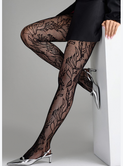 Панчохи в сітку (96 петель) з декоративним квітковим візерунком по всій довжині, із середнім сітчаст..
