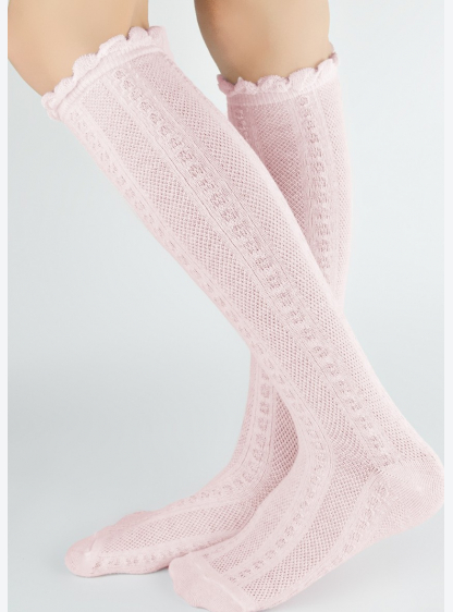 Дівчачі гольфи з м'якої ажурної в'язаної тканини. Склад: 75% бавовна, 22% поліамід, 3% еластан..