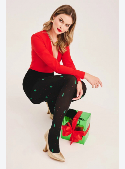 Чорні різдвяні колготки з візерунком у вигляді зеленої ялинки та крихітних червоних цяточок – чудова..