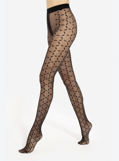 Чорні, прозорі колготки щільністю 20 деньє з яскравим візерунком. Еластичні, вони підлаштовуються пі..