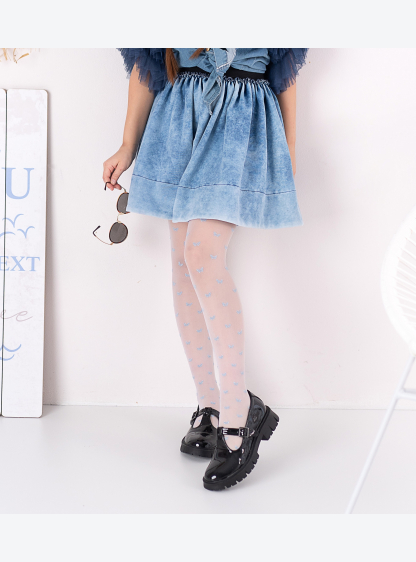 Колготки для дівчинки з малюнком з мікрофібри з блискучим нейлоновим малюнком. Все маленький клин. С..