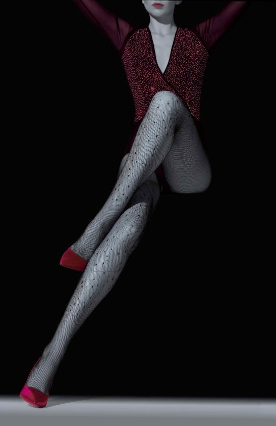Жіночі колготки в сіточку з блискучими чорними каменями - ідеальний вибір, щоб вразити своєю жіночністю. Покриття без трусиків робить їх придатними для багатьох нарядів, у тому числі тих, що прилягають до тіла. Склад: 90% поліамід, 10% еластан.