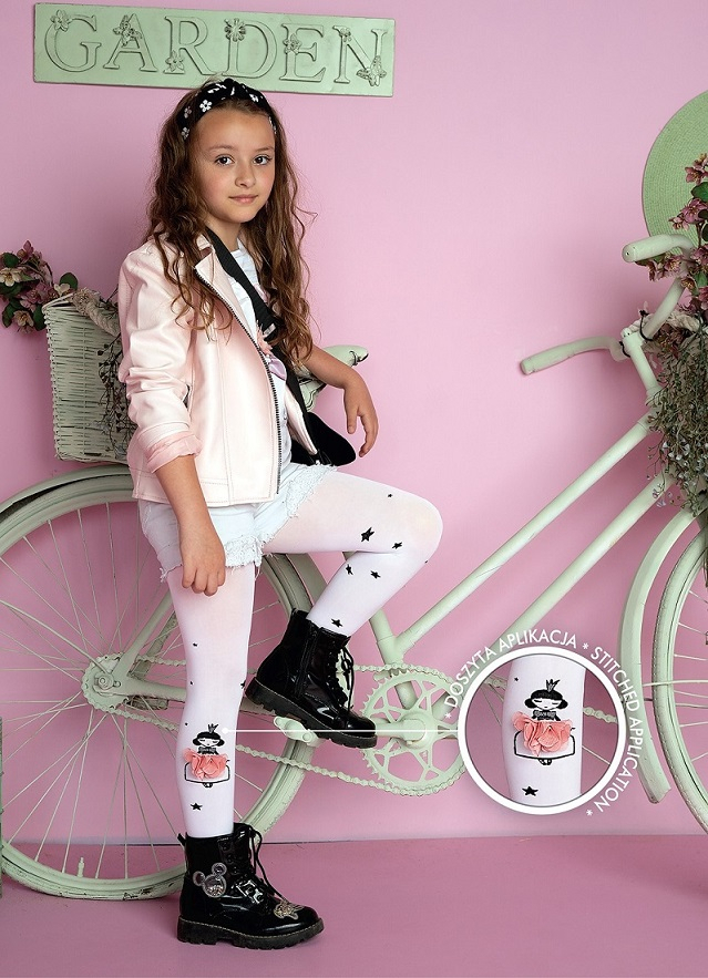 Колготки для дівчинки з мікрофібри 40 деньє. Завдяки технології 3D вони м'які та приємні на дотик. Прикрашена аплікацією принцеси. Склад: 94% поліамід, 6% еластан.