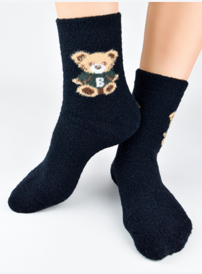 Жіночі шкарпетки з м'якої, пухкої трикотажної тканини з візерунком ведмедика. Зручна манжета, що не ..