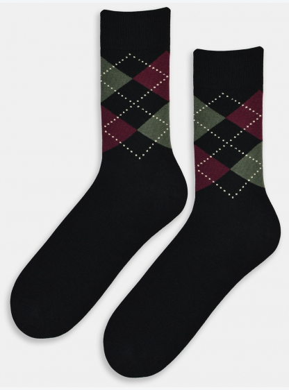 Чоловічі шкарпетки з приємних до тіла матеріалів з додаванням вовни, декоровані ромбовидним візерунк..