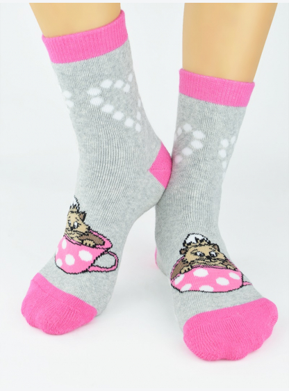 Шкарпетки для дівчинки із зображенням голови собаки виготовлені з м'якого трикотажу в поєднанні з пу..
