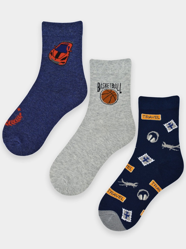 Гарні візерунчасті бавовняні шкарпетки для хлопчиків із зручною манжетою та плоским швом. Вони ідеально облягають ногу та забезпечують комфорт. Викрійки упаковані випадковим чином. Склад: 70% бавовна, 25% поліамід, 5% еластан.