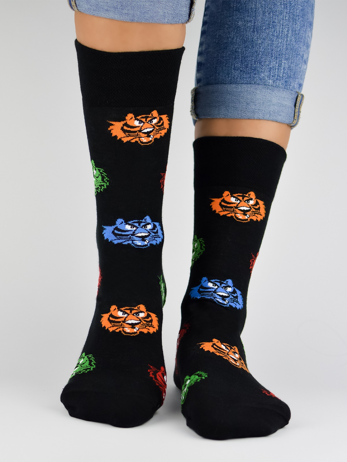Чоловічі шкарпетки з малюнком з приємної бавовни. Шкарпетки з цікавим дизайном. Мають зручний манжет і плоский шов. Склад: 80% бавовна, 18% поліамід, 2% еластан.