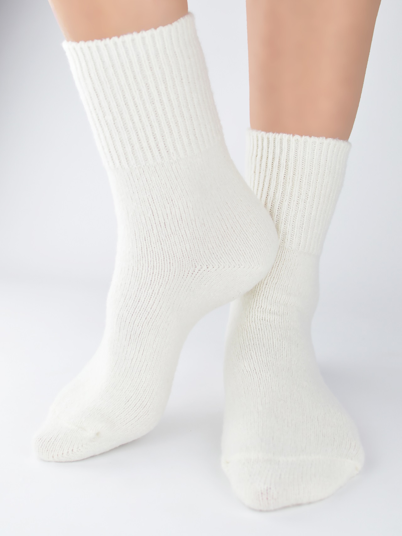 Зручні жіночі шкарпетки однотонного кольору з м'якої та приємної до шкіри бавовняної тканини. Трикотажне полотно в дрібну смужку. Манжета без тиску. Склад: 45% акрил, 40% поліестер, 10% шерсть, 5% еластан.