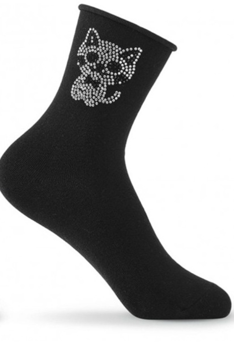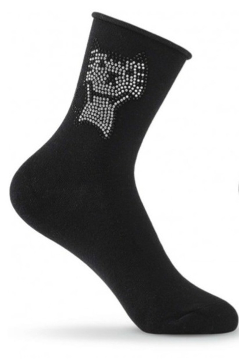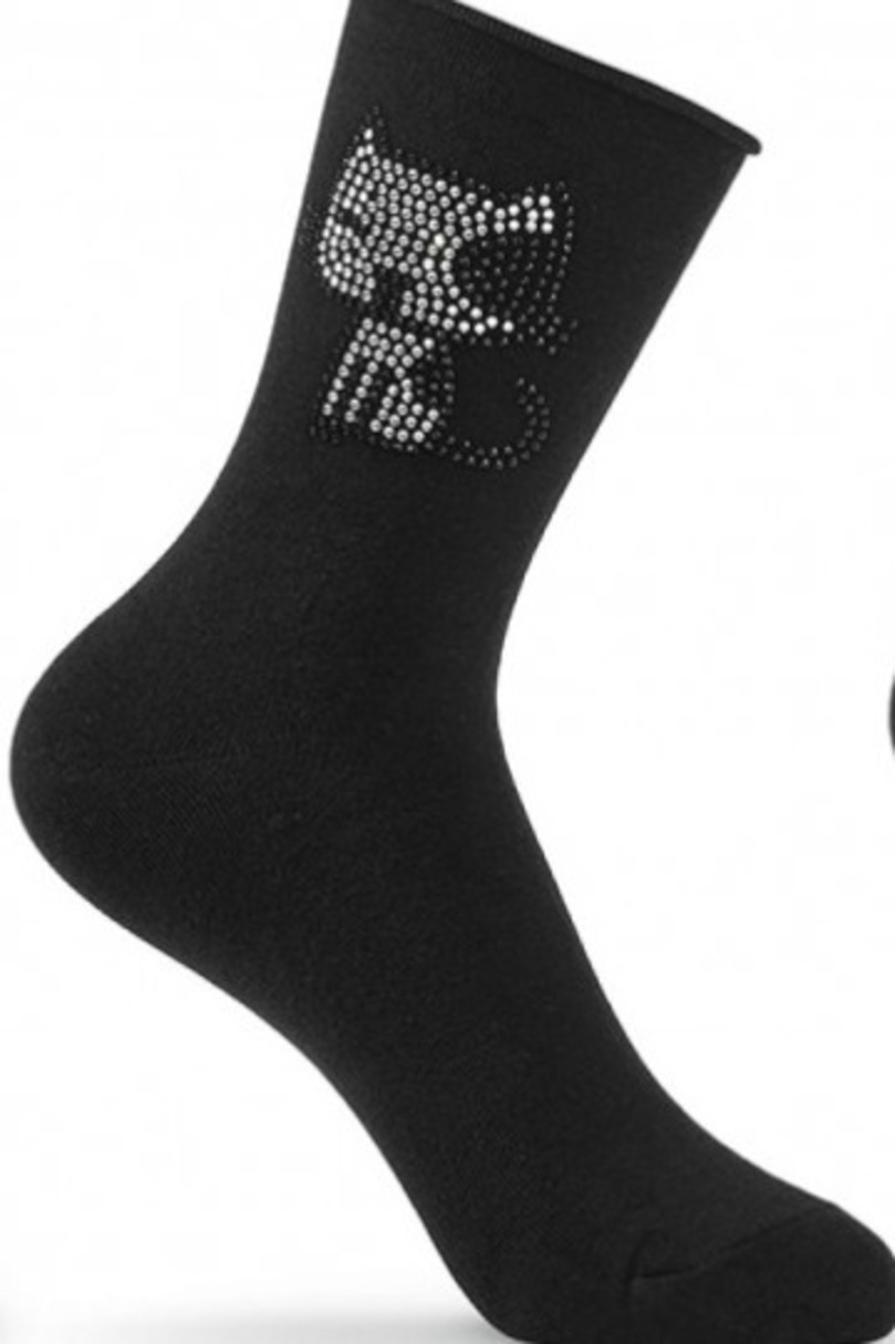 Жіночі шкарпетки з гладкої бавовни, прикрашені візерунком з блискучих цирконів, оброблені манжетом, що не тисне, підгортається.