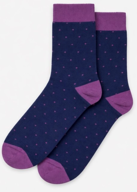 Ці шкарпетки характеризуються високою міцністю на розрив та чудовою повітропроникністю. Вони мають ніжний візерунок у горошок. Склад: 87% бавовна, 11% поліамід, 2% еластан.