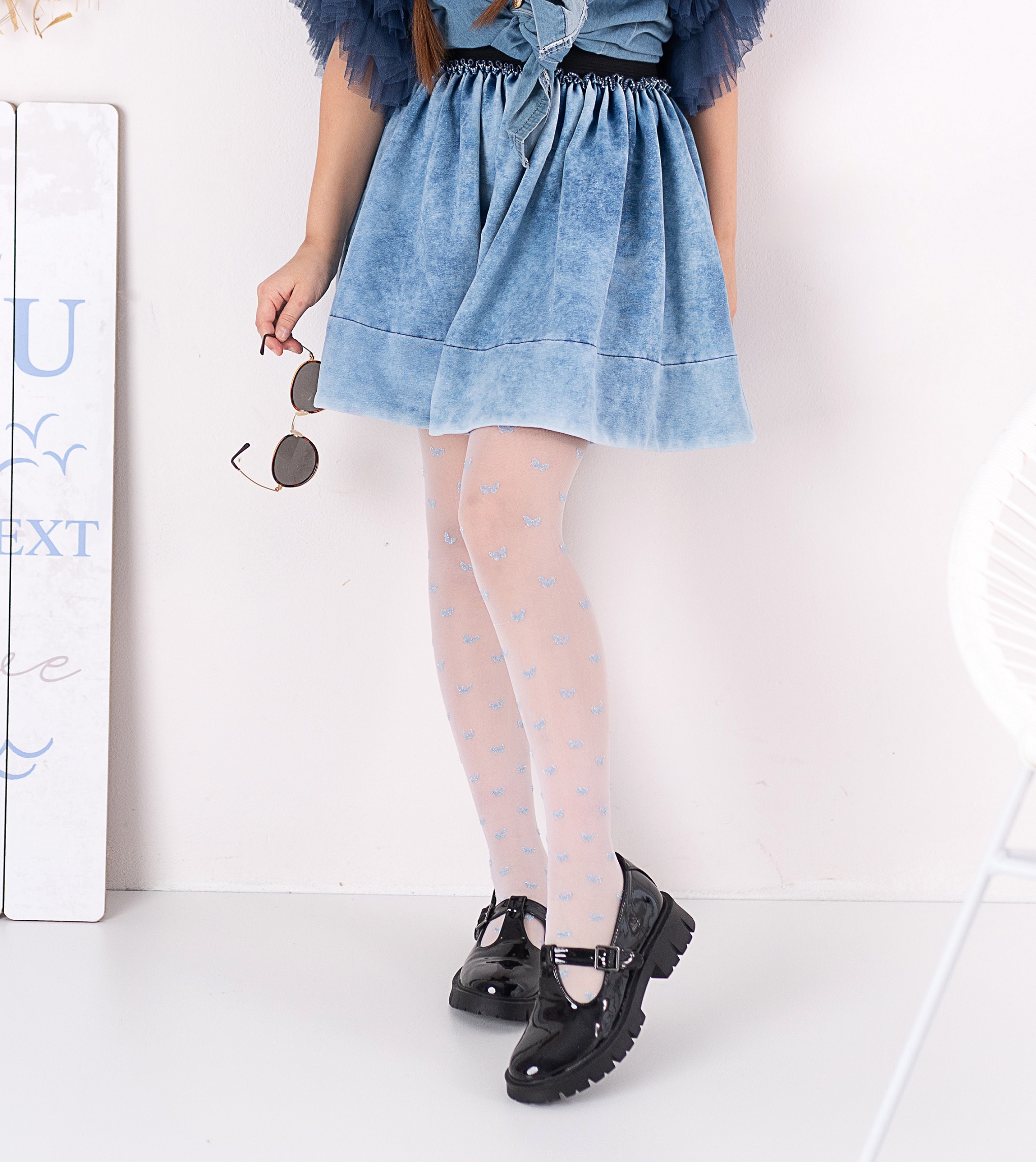 Колготки для дівчинки з візерунком виготовлені з подвійної плетеної пряжі з додаванням металізованої пряжі. Вшивна ластовица. Склад: 78% поліамід, 9% еластан, 8% поліпропілен, 4% поліестер, 1% бавовна.