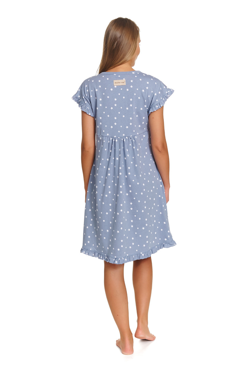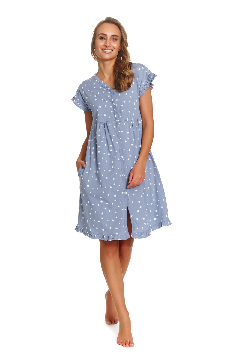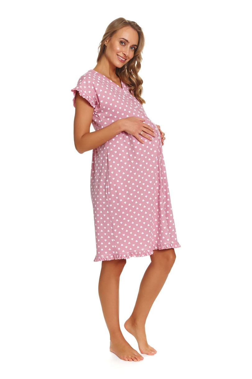 Жіноча нічна сорочка TCB.7455 DR NAP – це ідеальне поєднання комфорту та жіночного стилю. Ця модель ідеально відповідає темі «комфорт + витончена елегантність», пропонуючи вільний крій, короткі рукави та практичну застібку на кнопку по всій довжині. Розроблена з урахуванням потреб вагітних жінок та молодих мам, вільний крій адаптується до фігури, що змінюється, забезпечуючи повний комфорт як до, так і після пологів. Повна застібка на кнопку також забезпечує швидке та комфортне годування грудьми. Виготовлена повністю з високоякісної 100% бавовни, вона м’яка, дихаюча та приємна до шкіри, забезпечуючи спокійний сон та щоденний комфорт. Чарівний візерунок у формі серця та жіночний характер дизайну роблять нічну сорочку стильною навіть після вагітності. Додатковою перевагою є практичні кишені, що дозволяють завжди тримати дрібні речі під рукою. Ретельне виготовлення та сертифікація OEKO-TEX Standard 100 підтверджують безпеку та високу якість матеріалу. Це ідеальний вибір для жінок, які цінують комфорт, функціональність та витончену естетику.
