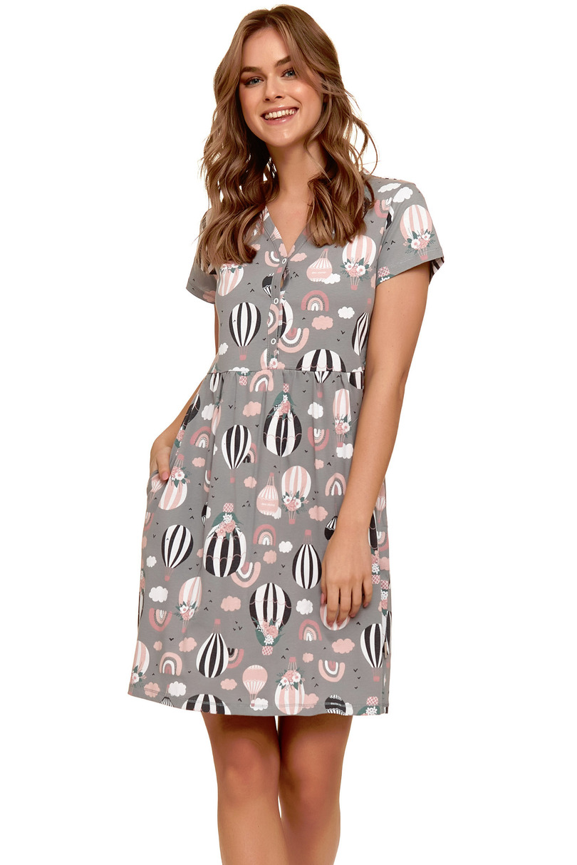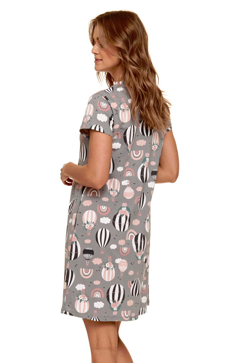 Жіноча сорочка з короткими рукавами, виготовлена з надзвичайно м'якої бавовни. Застібається на кнопки, сорочка має легкі складки під грудьми для ідеально приталеного силуету. Довжина: вище коліна. Склад: 100% бавовна.