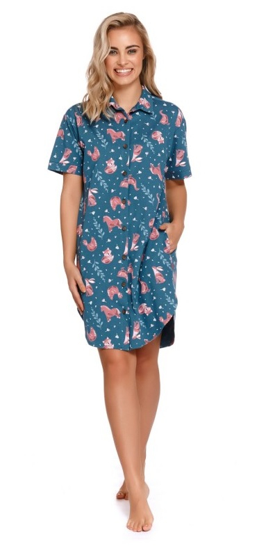 Нічна сукня з високоякісного м'якого бавовни (100%). Застібається на ґудзики, з короткими рукавами та кишенями. Ідеально підходить під час вагітності, він також ідеально підходить без животика.
