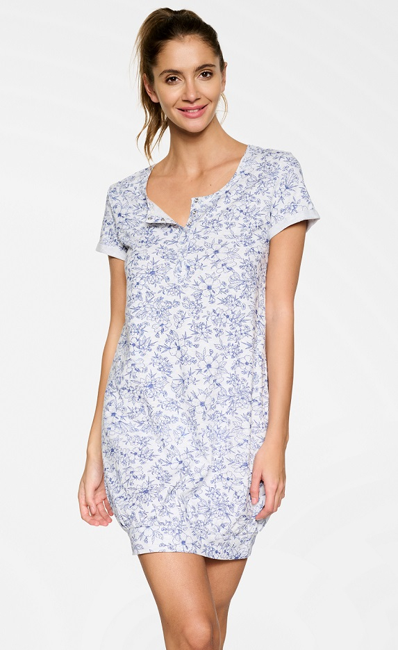 Жіноча сорочка з коротким рукавом з високоякісної бавовни. Зверху застібається на блискавку, знизу закінчується ніжним ранцем. Склад: 98% бавовна, 2% віскоза.