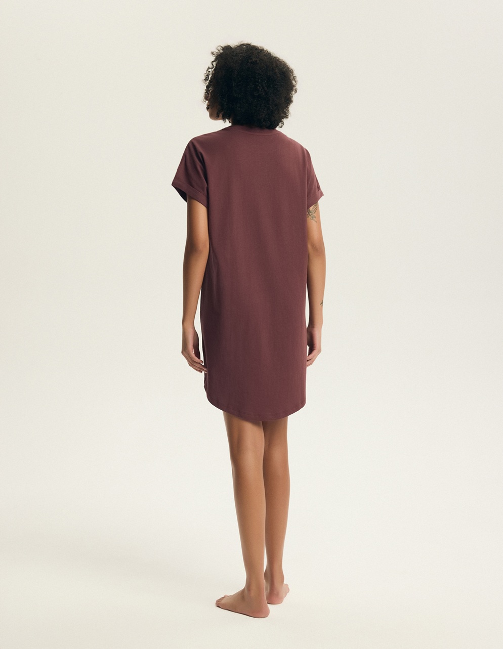 Жіноча м'яка бавовняна нічна сорочка вільного прямого крою з принтом спереду. Короткі рукави з м'яко закасаними низами, заокругленим поділом та довжиною вище коліна. Склад: 100% бавовна.