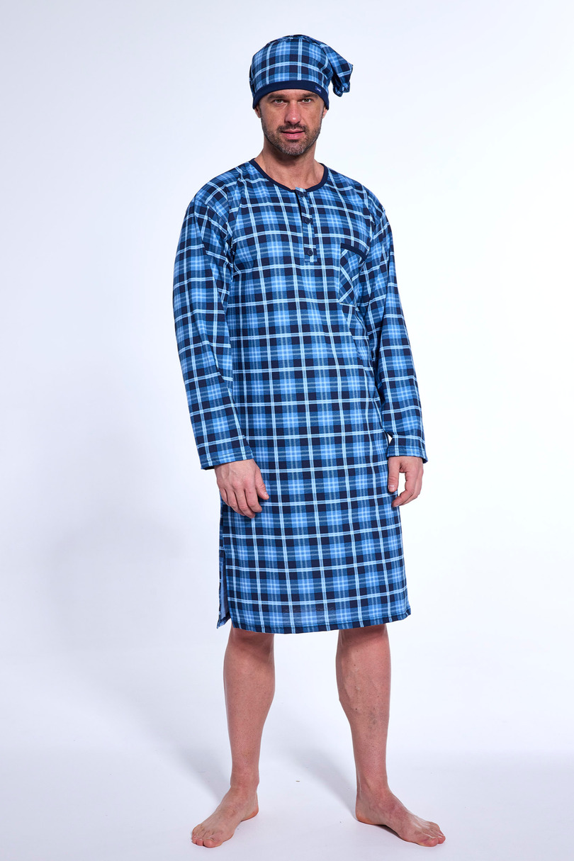 Чоловіча нічна сорочка з довгим рукавом з надзвичайно м'якої бавовни. Застібка спереду на кнопки. Упакований в коробку. Склад: 100% бавовна