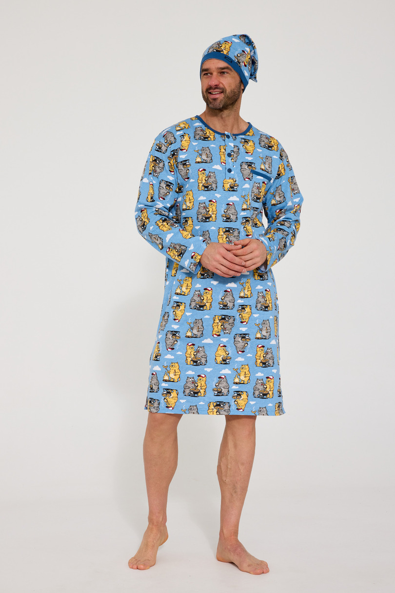 Чоловіча нічна сорочка Cornette DR 110 W/26 – це класичний та зручний варіант для чоловіків, які цінують комфорт та позачасовий стиль. Ця модель з довгими рукавами виготовлена з надзвичайно м’якої високоякісної бавовни, яка приємна до шкіри, дихаюча та забезпечує комфортний сон цілий рік. Передня частина сорочки застібається на ґудзики для додаткової функціональності та зручності. Класичний крій гарантує свободу рухів та комфорт під час сну та вдома. Ретельна робота та натуральний склад матеріалу забезпечують збереження форми та естетичної привабливості сорочки навіть після численних прань. Виріб упакований в елегантну коробку, що робить його ідеальним практичним та стильним подарунком. Склад: 100% бавовна.