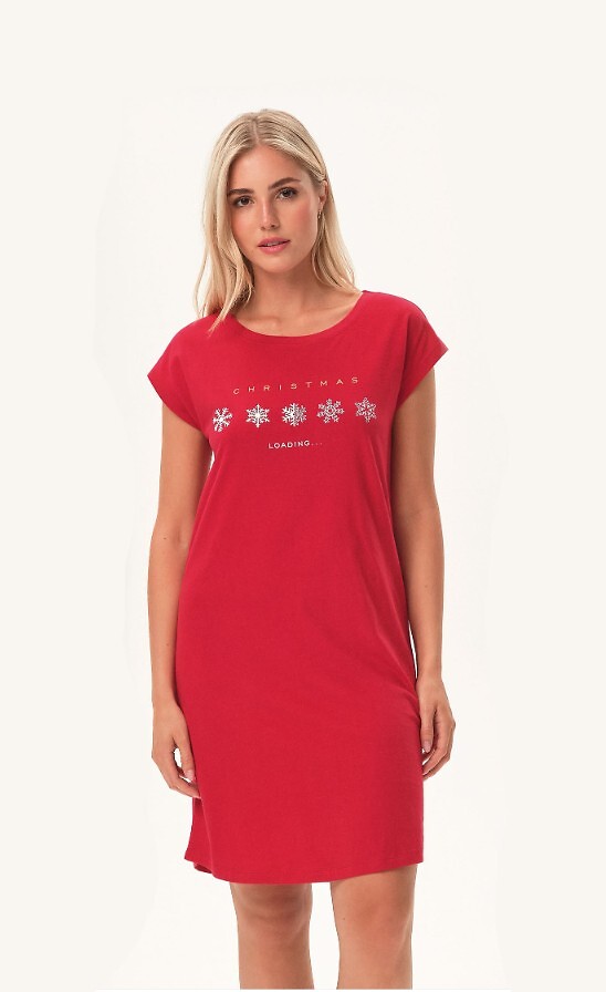 Нічна сорочка з коротким рукавом. Делікатний принт спереду. Склад 100% бавовна.