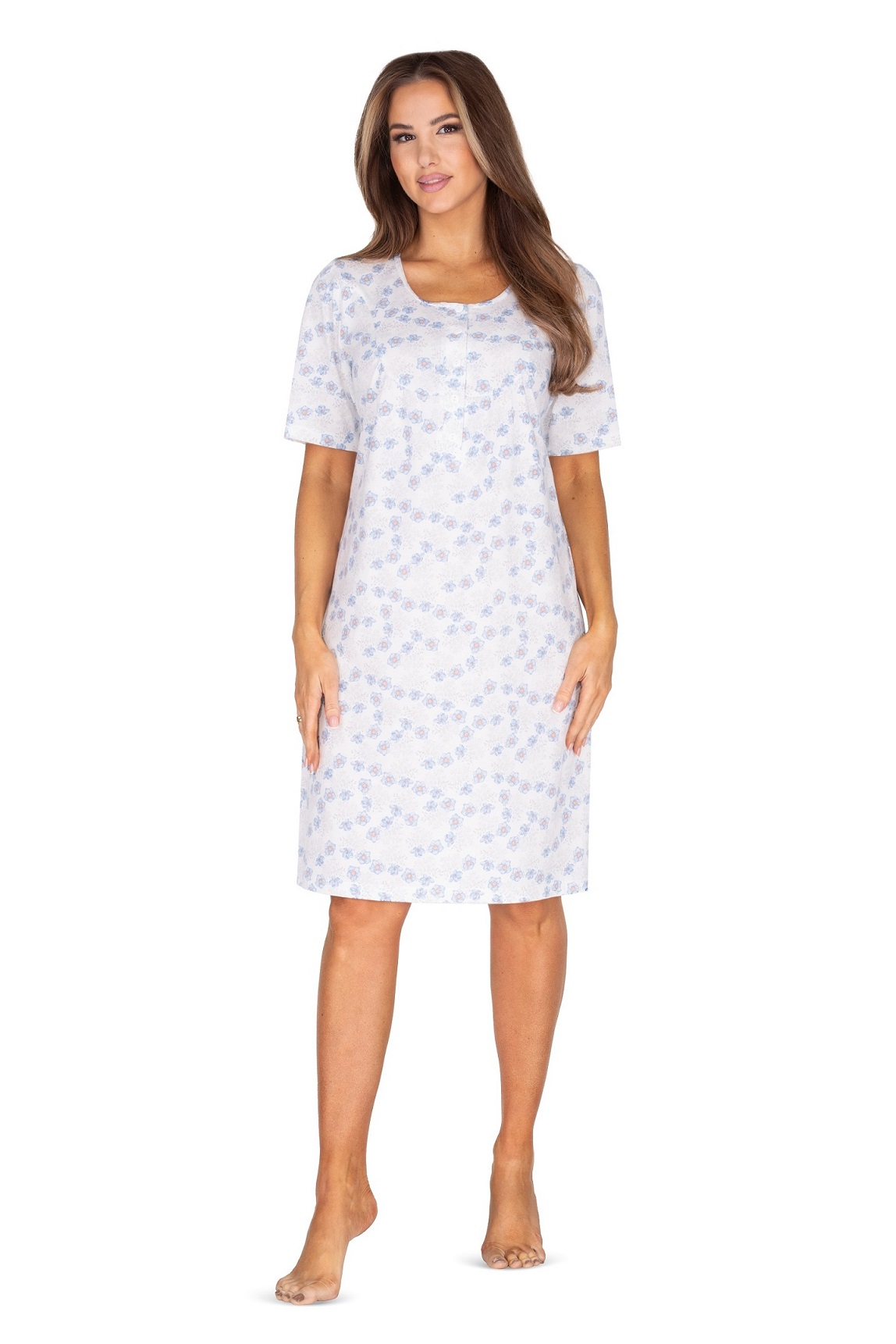 Жіноча сорочка з малюнком з коротким рукавом. Виготовлений з високоякісної бавовни. Довжина до коліна. Склад: 100% бавовна.