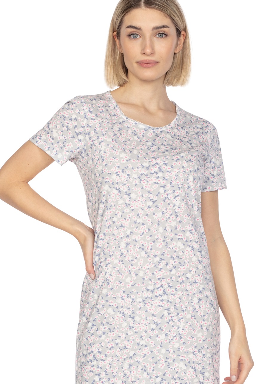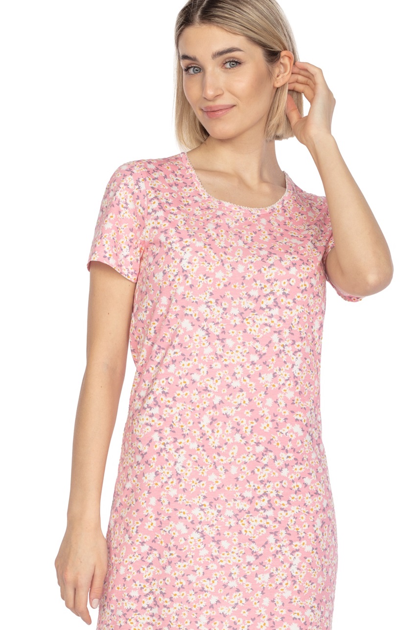 Бавовняна жіноча сорочка з візерунком і короткими рукавами. Довжина вище коліна. Склад: 100% бавовна.
