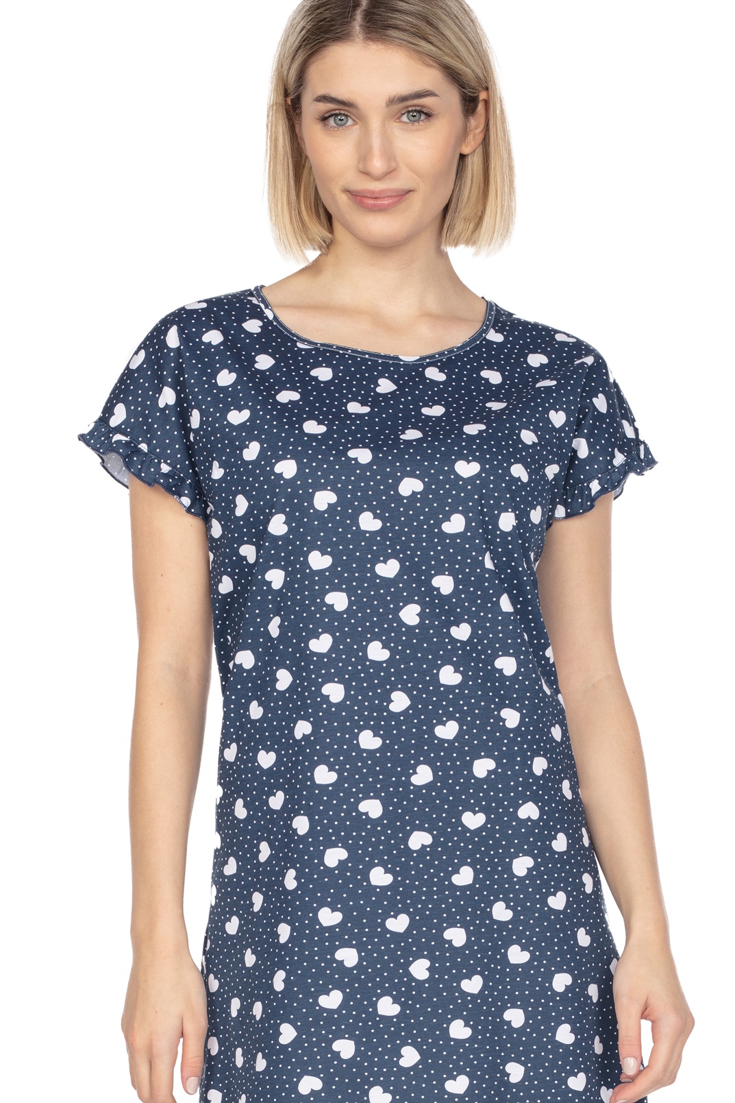 Жіноча бавовняна сорочка з короткими рукавами та воланами. Довжина вище коліна. Склад: 100% бавовна.