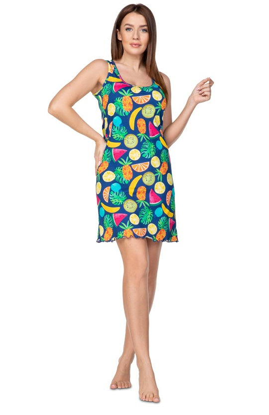 Жіноча нічна сорочка, ідеально підходить для спекотних днів. На широких бретелях, злегка приталених, довжиною вище коліна. Склад: 100% бавовна.