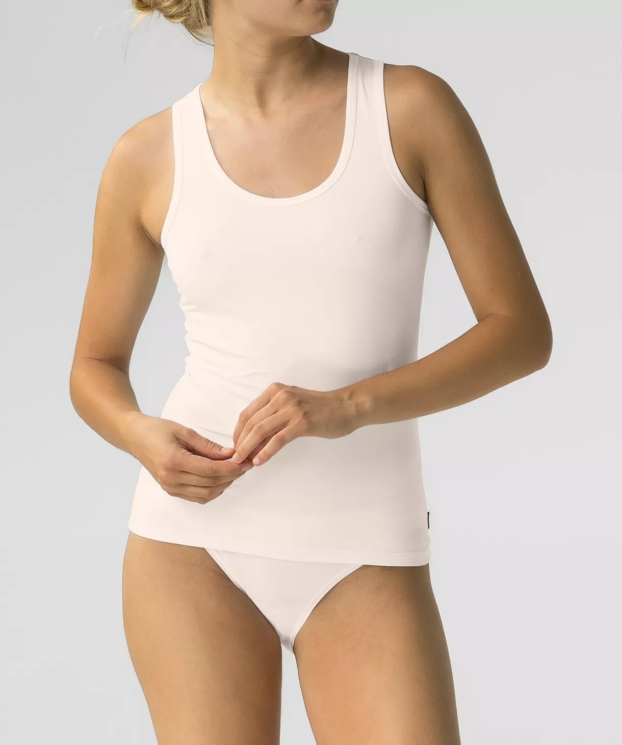 Ця майка з універсальним глибоким вирізом горловини та товстими бретельками виготовлена з м'якої, дихаючої бавовни, яка запобігає неприємному потовиділенню. Склад: 93% бавовна, 7% еластан.