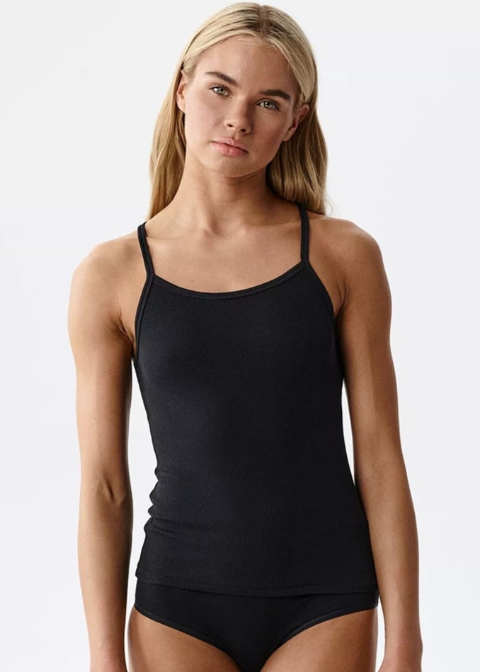 Ця жіноча майка поєднує в собі комфорт з динамічним дизайном та універсальним характером. Тонкі бретельки та виріз на спині підкреслюють плечі, забезпечуючи максимальний комфорт та свободу рухів. Склад: 95% бавовна, 5% еластан.