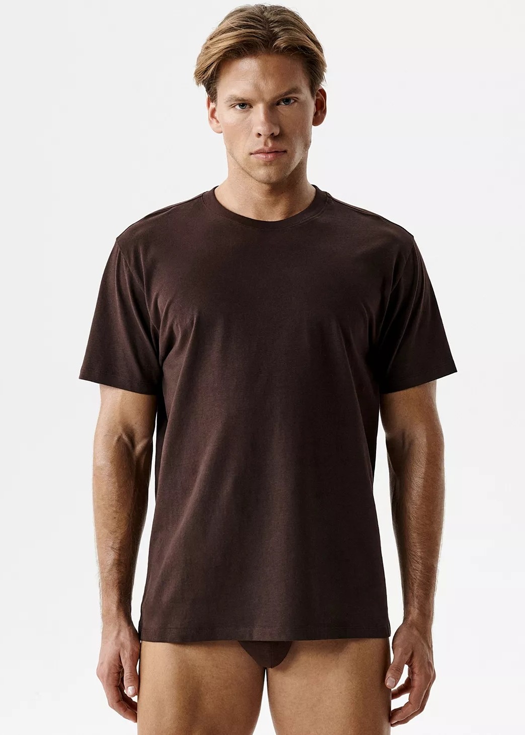 Ця універсальна чоловіча футболка виготовлена з оксамитового трикотажу з персиковим ефектом. Завдяки коротким рукавам і круглому вирізу горловина ідеально підходить для повсякденного та спортивного стилю. Виготовлена зі 100% бавовни.