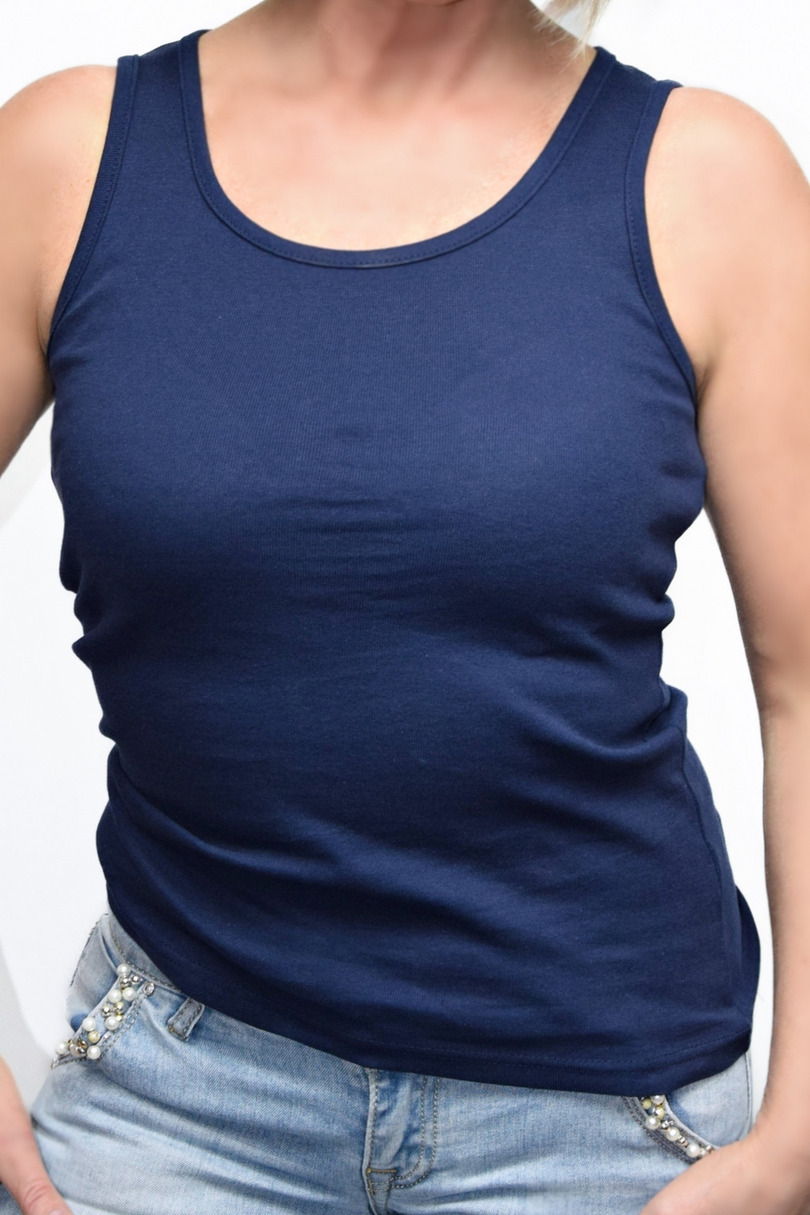 Ця жіноча бавовняна футболка в ребристий візерунок має широкі бретелі. Маст-хев! Ідеально підходить для літа, добре поєднується з більшістю образів. 100% бавовна.