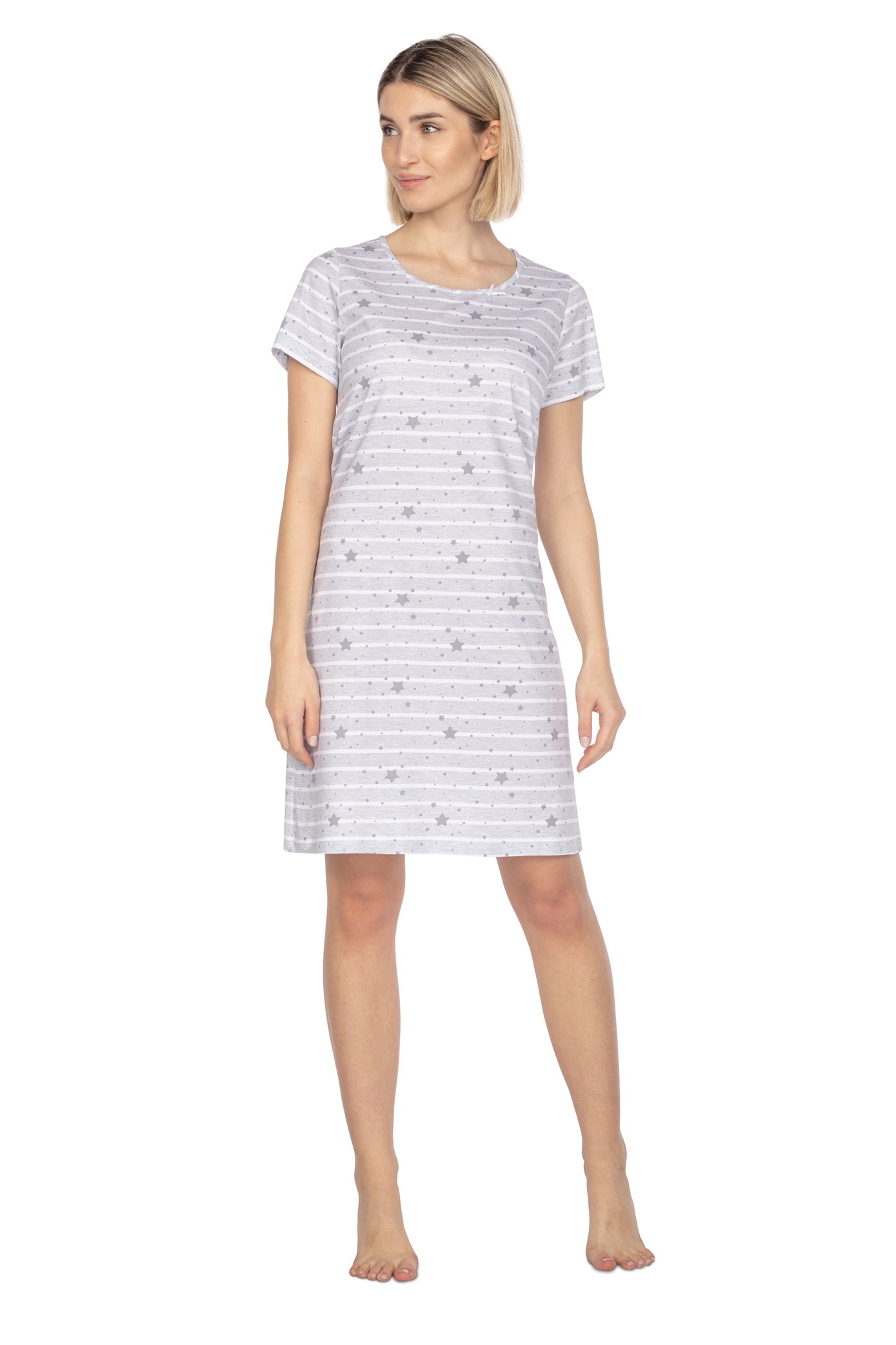 Жіноча сорочка з малюнком з високоякісної бавовни. Короткий рукав, довжина вище коліна. Склад: 100% бавовна.